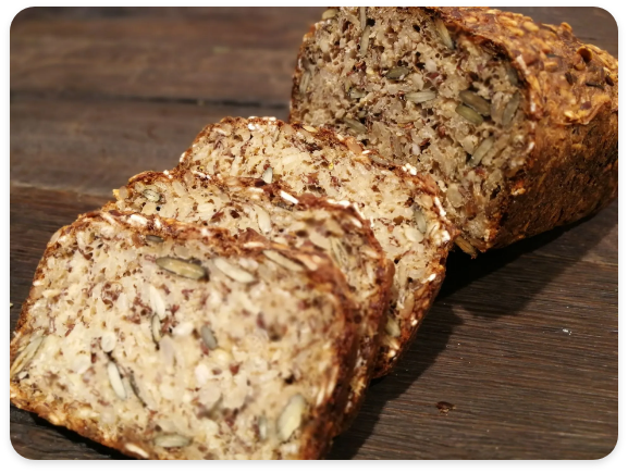 Hinweis: Unser Mental-Brot® enthält kein Weizen- oder Roggenmehl und ist daher ideal für Menschen, die unter einer Weißmehlunverträglichkeit leiden!